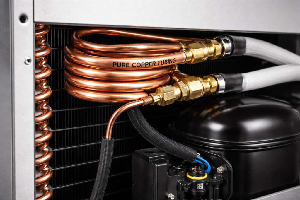 From a manufacturing and installation perspective, copper tubing is easy to bend, braze, and connect, allowing compact and efficient cooler designs. It supports leak-free joints and handles high pressure generated by refrigerant flow. This reliability reduces maintenance requirements and minimizes the risk of breakdowns during long-term use.